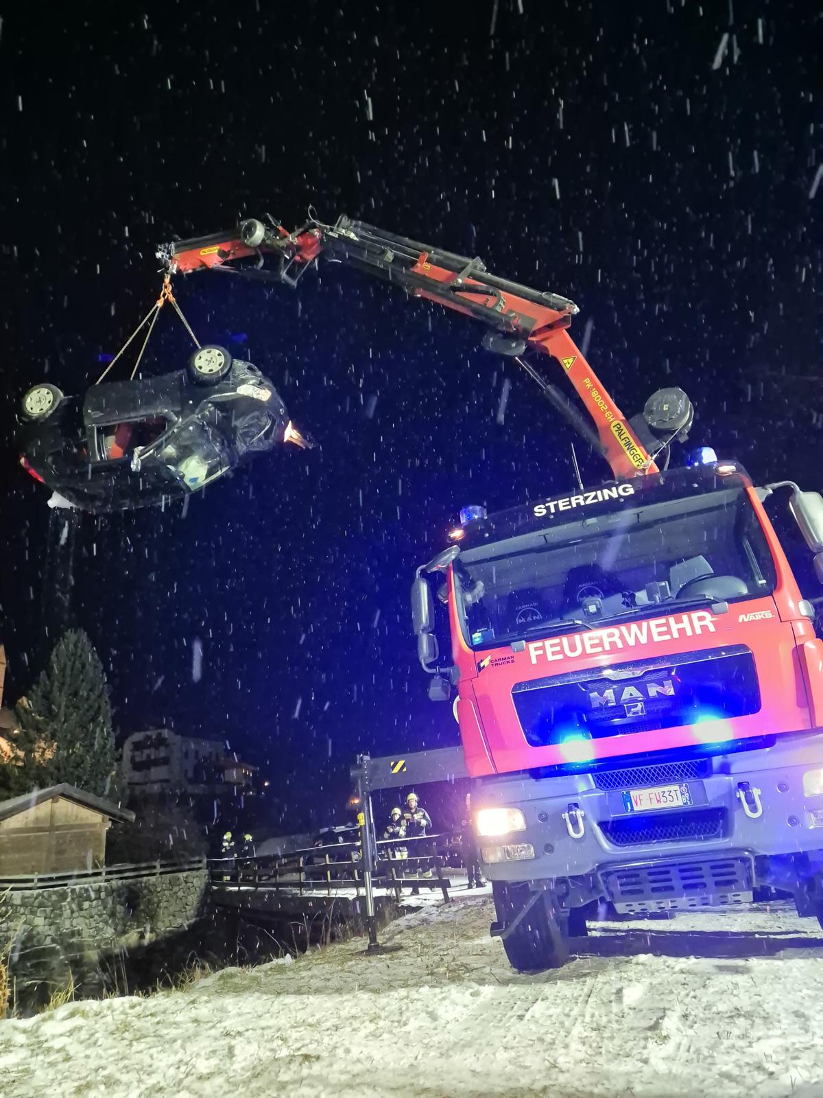 Gestern Abend unterstützten wir die Feuerwehr Pflersch bei einer Fahrzeugbergung. Ein Pkw war in einen Bach gestürzt; der Fahrer blieb glücklicherweise unverletzt. Mittels Kranfahrzeug wurde das Fahrzeug von uns geborgen und zurück auf die Straße gehoben.