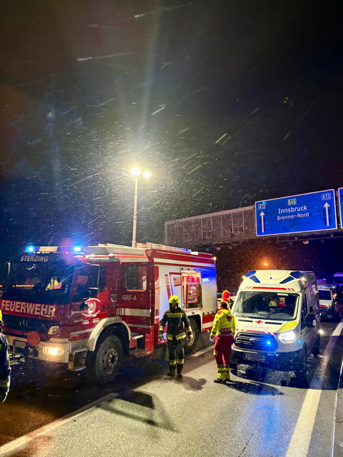 Kurz nach Mitternacht wurden wir, zusammen mit der Feuerwehr Gossensass, zu einem Verkehrsunfall auf die Brennerautobahn gerufen. An der Staatsgrenze kam es im Baustellenbereich zu einem Frontalzusammenstoß zwischen einem Pkw und einem Lieferwagen. Wir sicherten die Unfallstelle ab und befreiten eine Person mittels hydraulischer Rettungsgeräte. Zudem unterstützten wir das Weiße Kreuz bei der Erstversorgung der Patienten und reinigten die Fahrbahn. Die Autobahn war für die Dauer der Rettungs- und Reinigungsarbeiten komplett gesperrt. Der Einsatz war für uns nach zwei Stunden beendet.